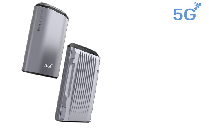 基站正面采用简洁的设计,表面镭雕5G标识,两侧的斜面有助于提高抗风的载荷,背面两侧的凹形可方便用户安装时进行把持,条形凹槽纹理有助于气流快速对基站进行散热。